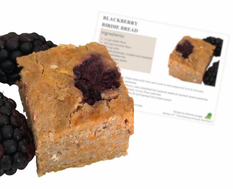 Give your pet bird a nutritious and flavorful snack with our homemade Blackberry Birdie Bread, created by the author of The Science of Avian Nutrition. This recipe is carefully crafted to combine wholesome ingredients that support avian health with the natural sweetness and antioxidant power of fresh blackberries.